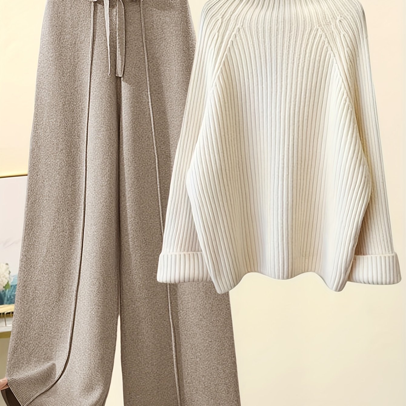 Zweiteiliges Strickset mit Rollkragenpullover und Hose für Damen