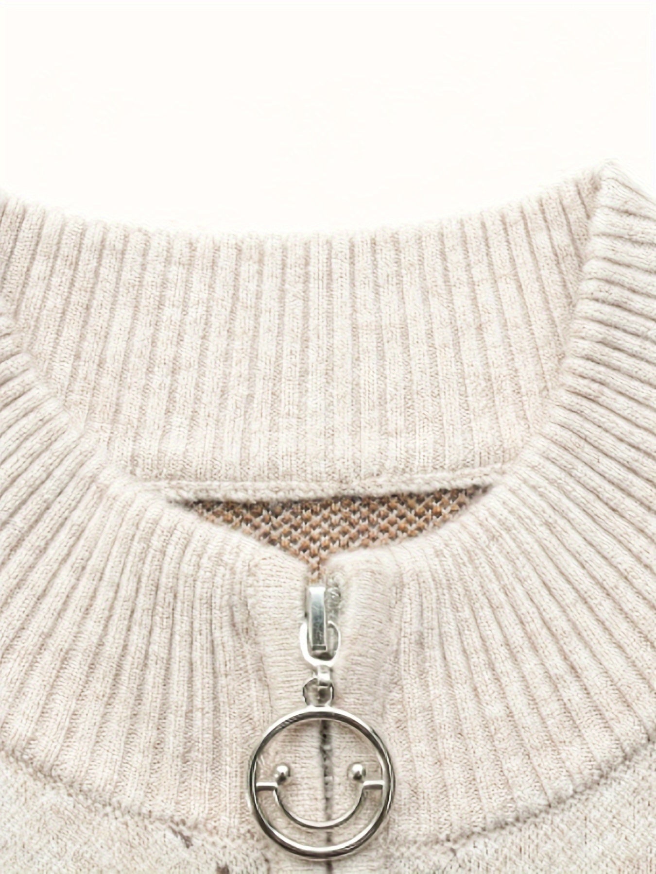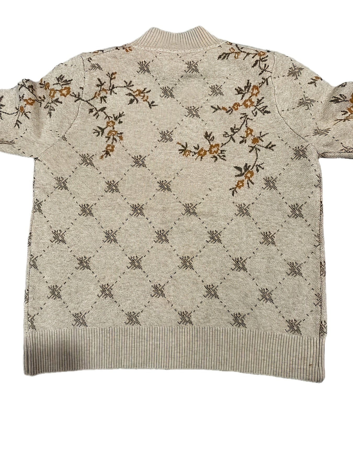 Diese feine Strickjacke mit floralem Jacquardmuster verbindet Stil und Komfort in einem zeitlosen Design. Der praktische Reißverschluss und der gerippte Stehkragen verleihen ihr eine moderne Note. Ideal für Büro, Freizeit oder als leichte Übergangsjacke in der kühleren Jahreszeit.
