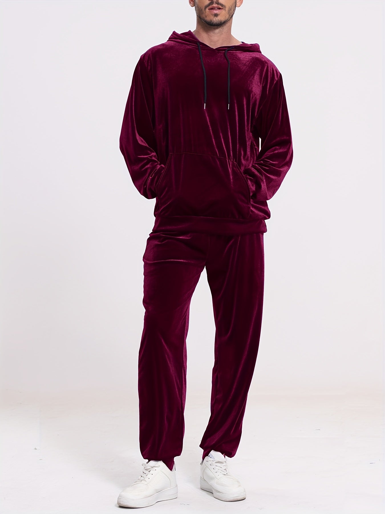 Dieses zweiteilige Set kombiniert einen Kapuzenpullover mit einer passenden Hose in schlichtem Design. Die Kängurutasche und die gerade Passform verleihen dem Look eine moderne Note. Ideal für entspannte Tage, Reisen oder Freizeitaktivitäten – pflegeleicht und vielseitig tragbar.