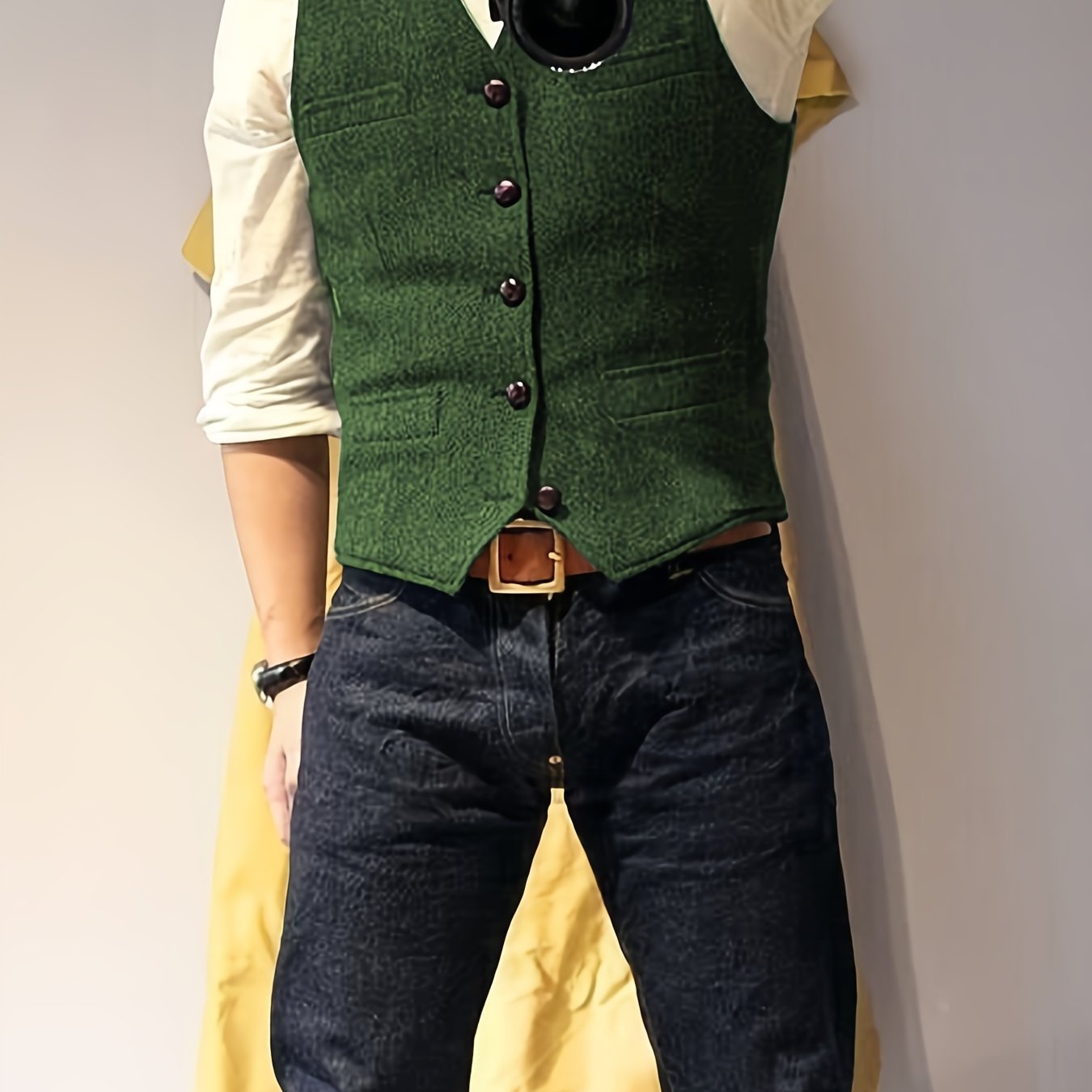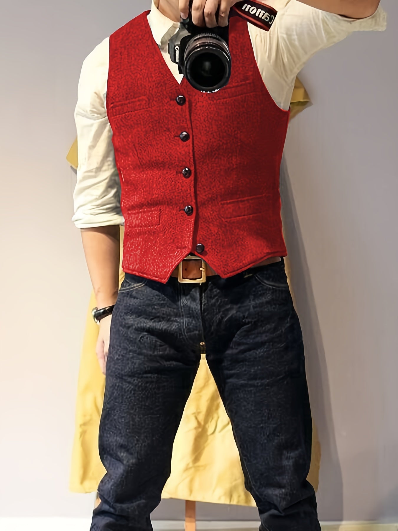 Diese Tweedweste kombiniert traditionelle Herringbone-Struktur mit einem modernen, figurbetonten Schnitt. Die Knopfleiste und funktionalen Seitentaschen verleihen ihr ein authentisches Vintage-Flair, ideal für besondere Anlässe, Freizeit oder Outdoor-Aktivitäten. Perfekt tragbar über Hemden – ob für Hochzeit, Party oder den täglichen Look.