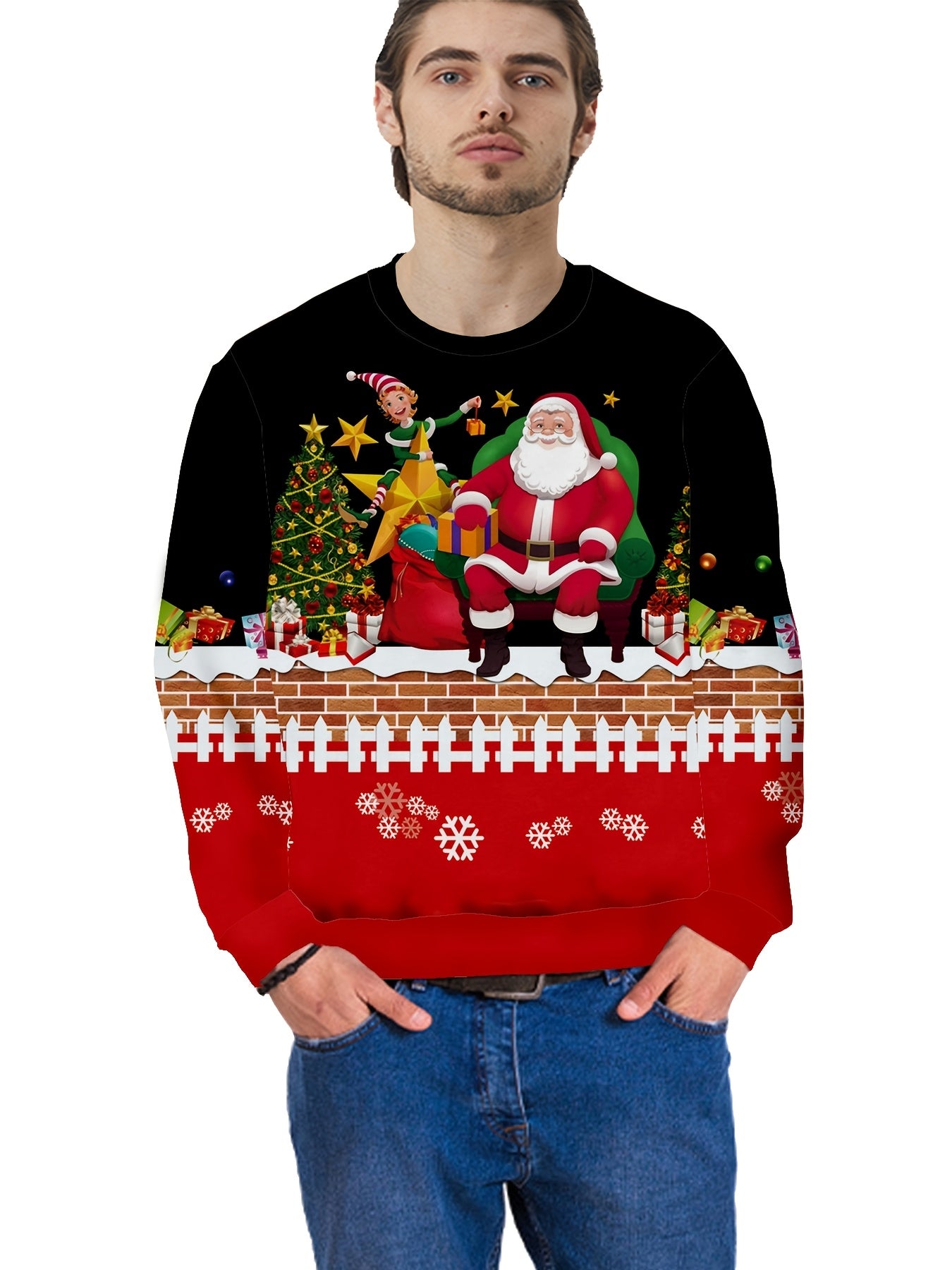 Dieser auffällige Weihnachtspullover bringt mit seinem fröhlichen Santa-Design sofort festliche Stimmung. Die lebendigen Farben und das detailreiche 3D-Motiv machen ihn zum Highlight auf jeder Weihnachtsfeier. Das weiche Material und die bequeme Passform sorgen dabei für angenehmen Tragekomfort den ganzen Tag über.