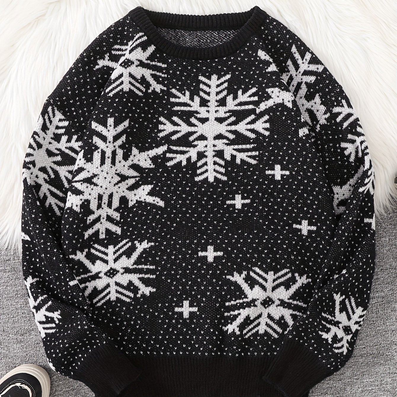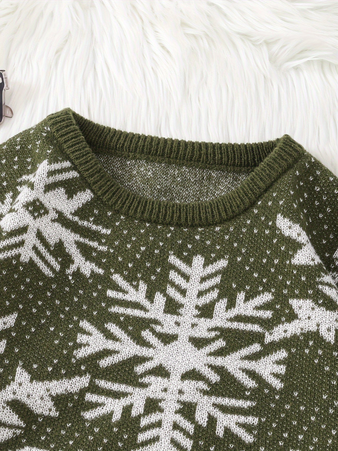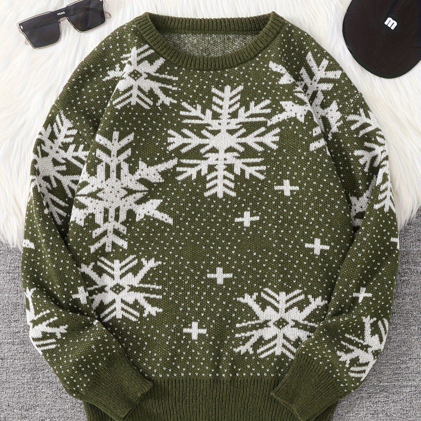 Dieser Pullover mit klassischem Schneeflockenmuster verleiht jedem Look eine winterliche Note. Das Jacquard-Design in kontrastreichen Farben sorgt für einen markanten Auftritt, ideal für festliche Anlässe und gemütliche Abende. Ein vielseitiges Kleidungsstück für die kalte Jahreszeit.